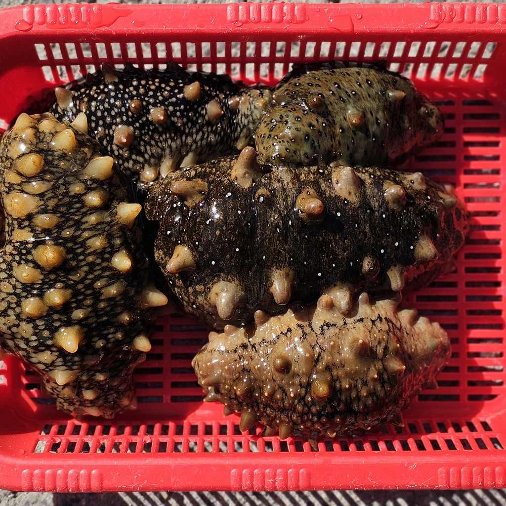 다이버 조업 자연산 돌기해삼
